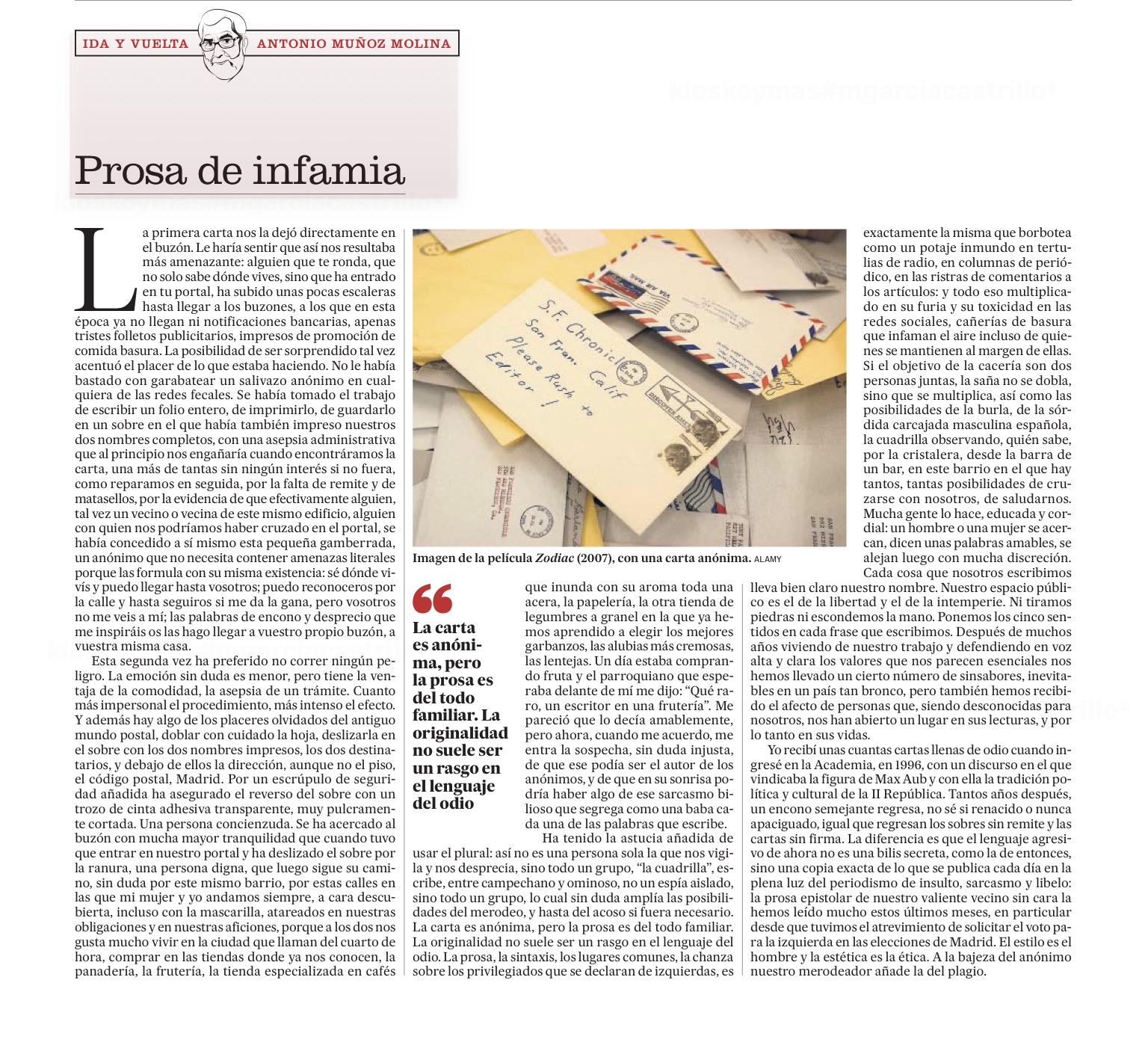 Prosas para la infamia. Antonio Muñoz Molina