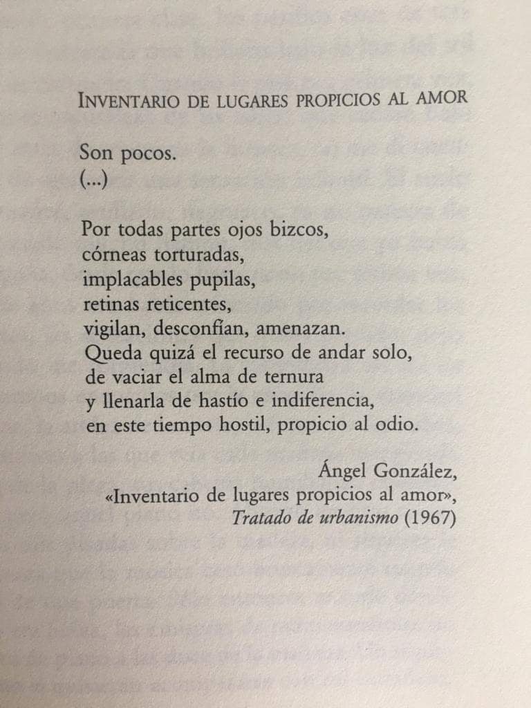 Recopilación de textos fotografiados. «Inventario de lugares propicios al amor». Ángel González
