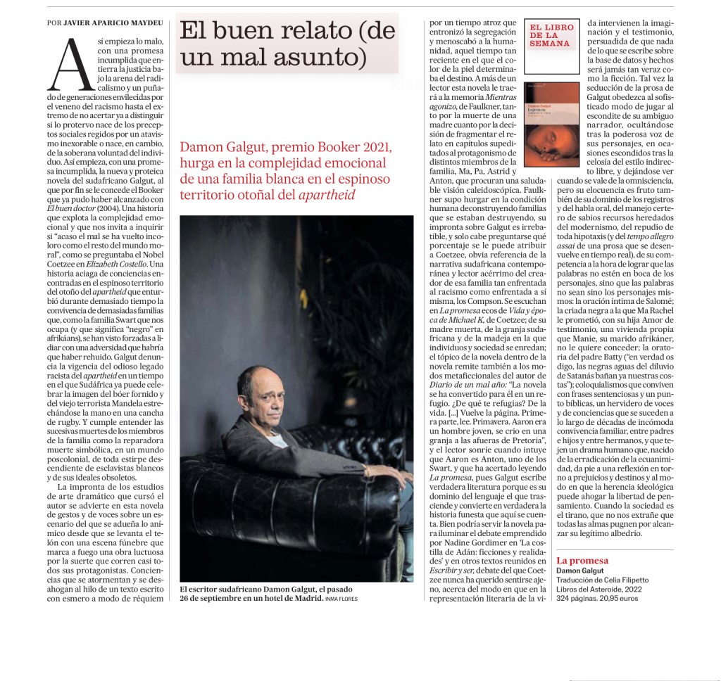 Crítica «La promesa». Damon Galgut. Javier Aparicio Maydeu