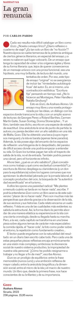 Crítica: «Gozo». Azahara Alonso