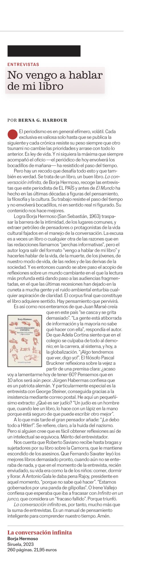 Crítica: «La conversación infinita». Borja Hermoso