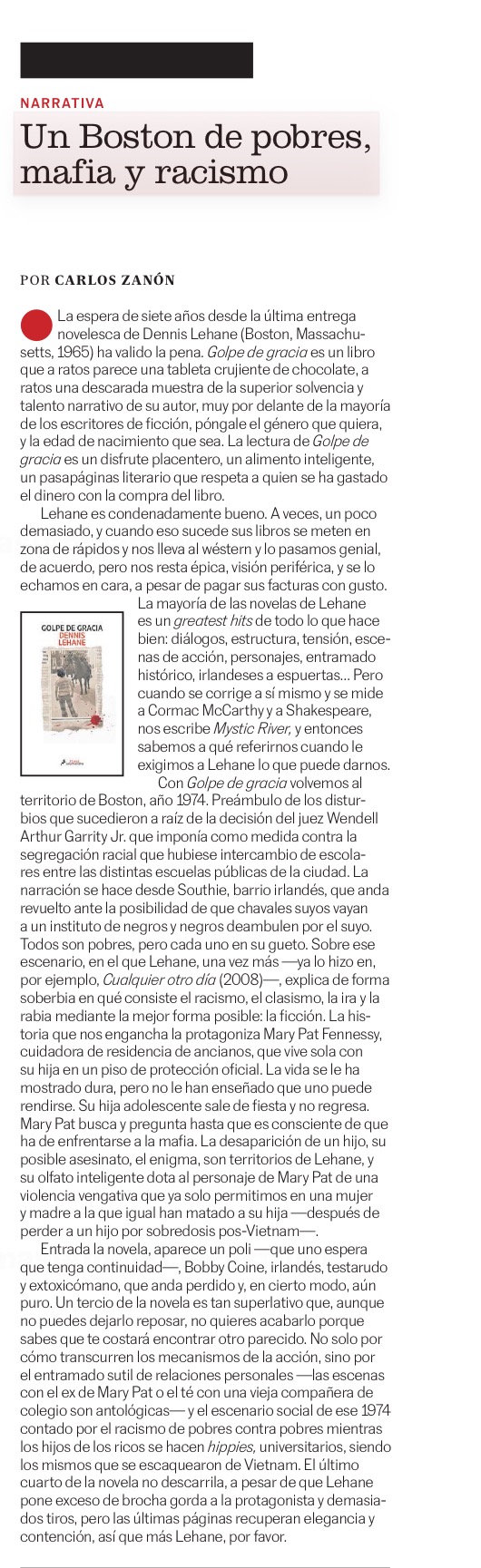 Crítica de «Golpe de gracia». Dennis Lehane