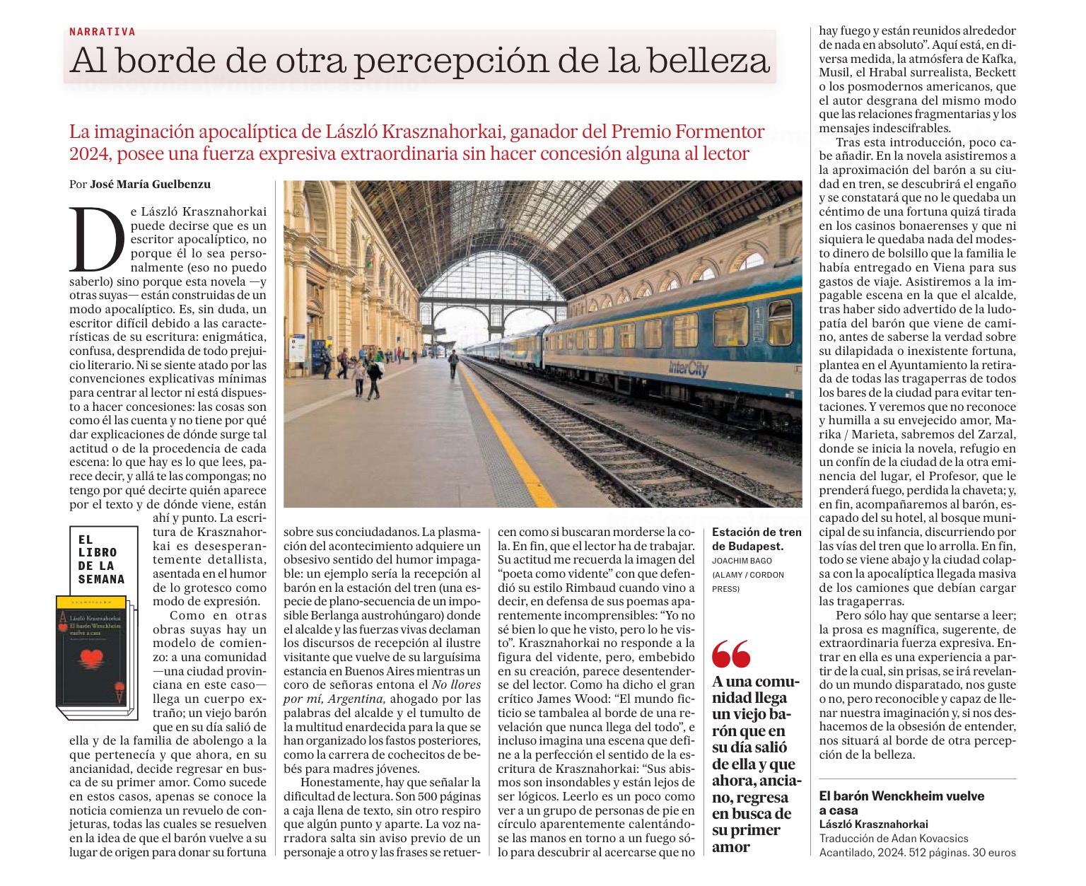 Crítica: «El barón Wenckheim vuelve a casa», de László Krasznahorkal
