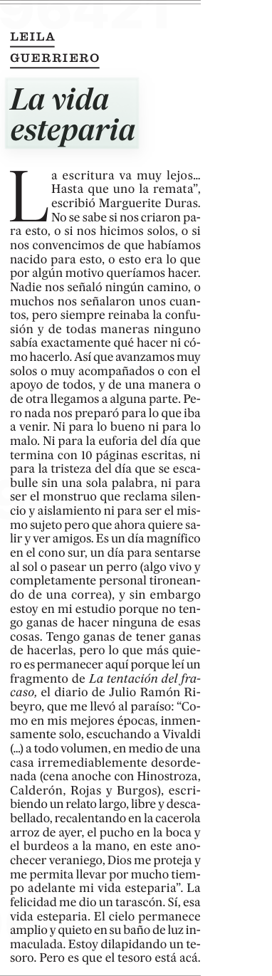 Columna. «La vida esteparia». Leila Guerriero